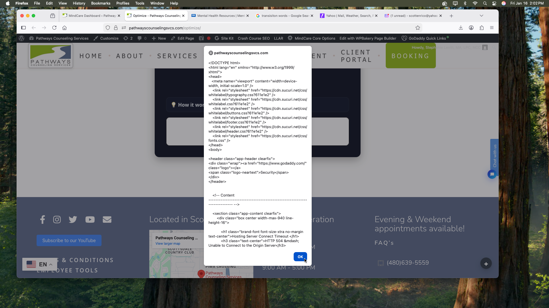 More technical term: The optimizer request is sometimes heavy, and your host/security (often GoDaddy/Sucuri) can time out the connection if it takes too long. That’s why you see HTTP 504 – Unable to Connect to the Origin Server. Closing it and re-running Optimize simply retries the request.